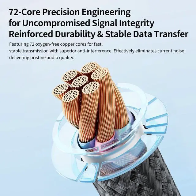 Featuring 72 oxygen-free copper cores for fast, stable transmission with superior anti-interference. Effectively eliminates current noise, delivering pristine audio quality.