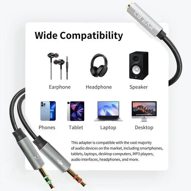 KA01 is compatible with the vast majority of audio devices on the market, including smartphones, tablets, laptops, desktop computers, MP3 players, audio interfaces, headphones, and more.