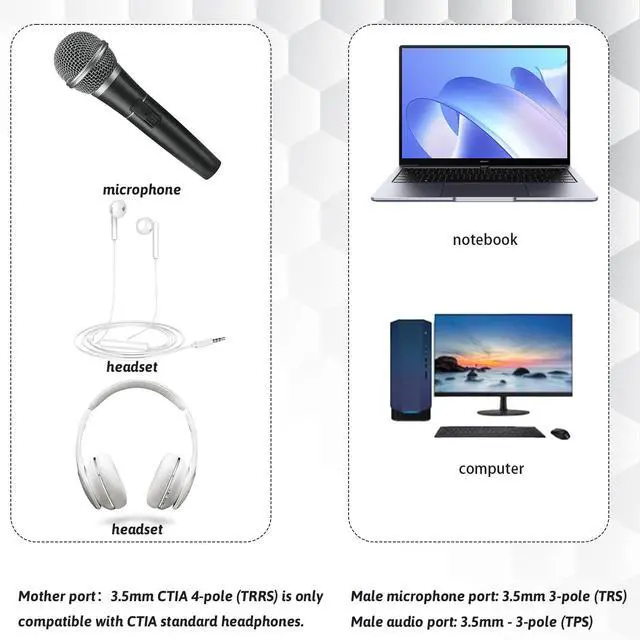 Packing List: 1 PCS Headphone Mic Splitter for PC