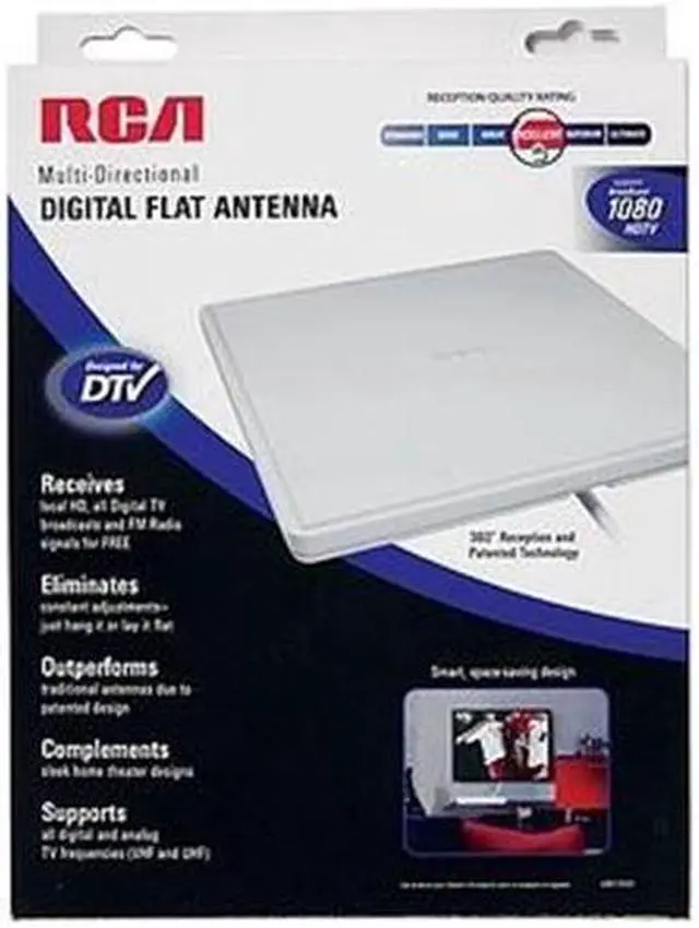 Receives all local HD and all digital TV broadcast signals and FM radio signals. Multi-directional indoor antenna designed for DTV. Eliminates constant adjustments - just hang it, stand it up or lay it flat. Paintable with coaxial cable built-in. Supports 1080 resolution reception