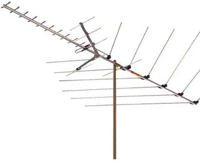 The Audiovox RCA Outdoor Digital Television Antenna is ideal for TV and FM radio for suburban or rural environments. This outdoor antenna is HDTV compatible with a 110-inch boom length to boost your UHF, VHF, and FM radio signals. With 36 easy lock elements to improve signal reception, the Audiovox RCA Outdoor Digital Television Antenna is effective up to a 65 mile radius of the broadcast signal and is compatible with all brands of televisions and television receivers.