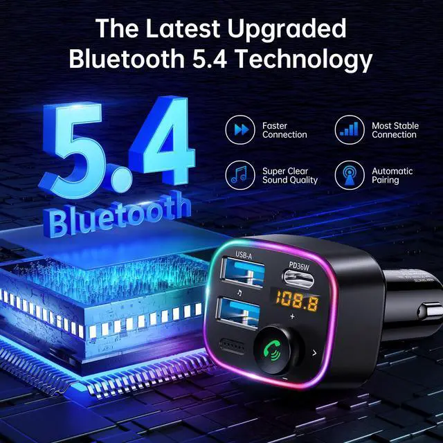 ![Alt view image 7 of 7 - Syncwire Bluetooth 5.4 FM Transmitter Car Adapter 48W (PD 36W & 12W) [Light Switch] [HiFi Bass Sound] [Fast Charging] Wireless Radio Music Adapter LED Display Hands-Free Calling Support USB Drive](https://c1.neweggimages.com/productimage/nb640/C595D2603020NWQCQBD.jpg)