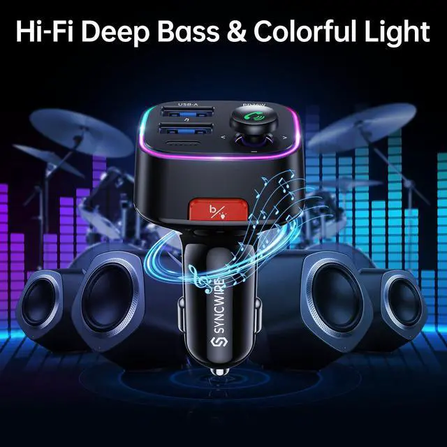 ![Alt view image 6 of 7 - Syncwire Bluetooth 5.4 FM Transmitter Car Adapter 48W (PD 36W & 12W) [Light Switch] [HiFi Bass Sound] [Fast Charging] Wireless Radio Music Adapter LED Display Hands-Free Calling Support USB Drive](https://c1.neweggimages.com/productimage/nb640/C595D2603020NWQAN90.jpg)