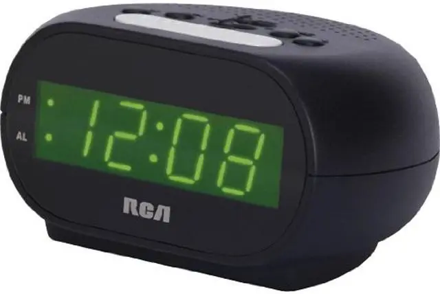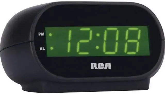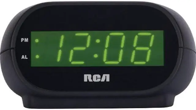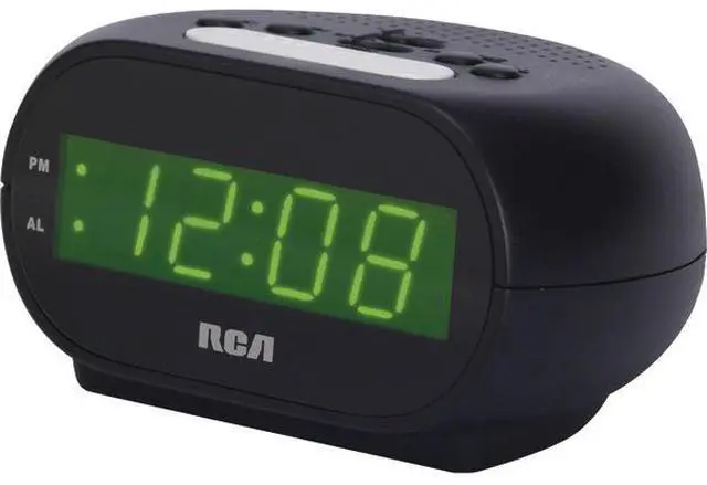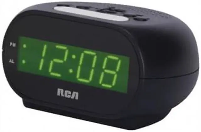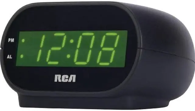 Look no further: the RCA RCD20 is a streamlined alarm clock that offers snooze, a simple interface, and No Worry battery back-up that lets you rest easy too... 7" green LED. Single alarm. Snooze & night-light button. Alarm indicator. AC powered. Battery backup