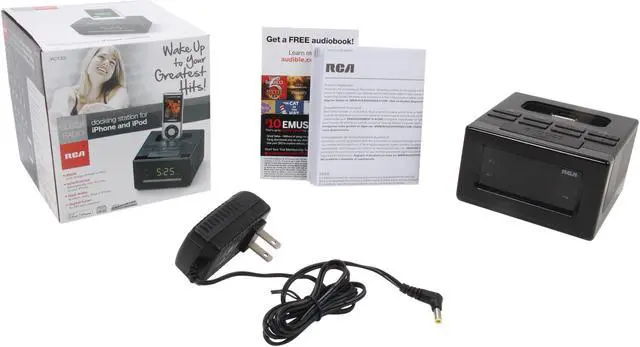 When you want nothing in the morning but your tunes on your iPhone® or iPod®, the best device to have beside your bed is the RCA RC130i Clock Radio Docking Station. This RCA RC130i Clock Radio Docking Station will never leave your bedside, with its alarm clock capability that plays tunes from the iPhone® or iPod®. And when you need to listen to something else, this dock also plays FM broadcasts. You can even program the stations you listen to using the 20 presets.