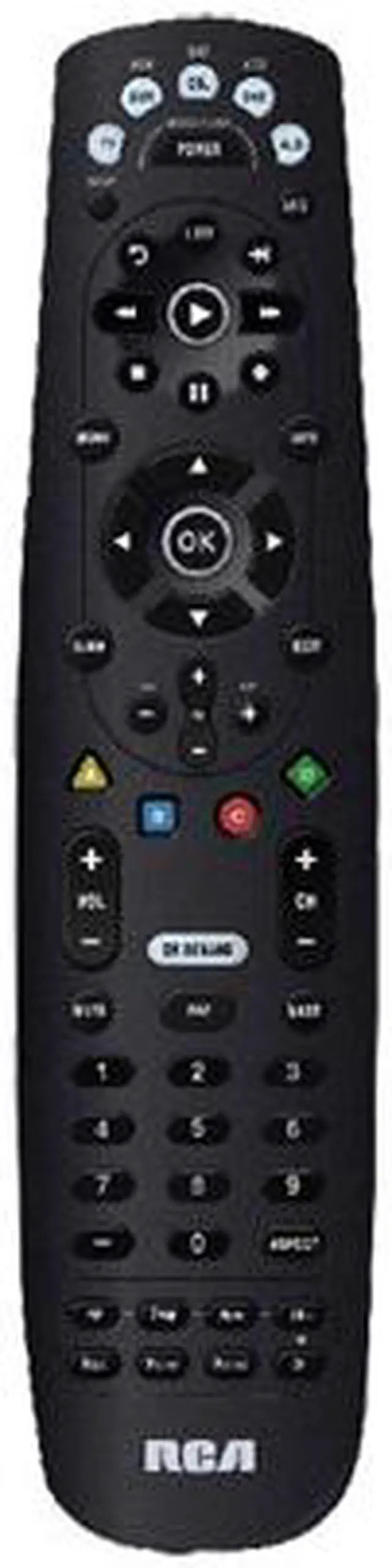 | Features | Designed especially for cable systems Controls TV; DVR or AUX; cable or satellite, DVD or DVR, and audio Enhanced DVR or PVR capability Red, blue, yellow and green keys access advanced cable or satellite and bluray functions Master power feature turns up to 5 devices on and off Direct code entry and manual code search programming Menu support Volume and channel punch through |