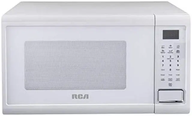 RCA RMW1129-WHITE 1.1 Cu Ft 1000-Watt Countertop Microwave, White. features six pre-set cooking options for turning out delicious, nutritious meals in seconds. The microwave delivers 1000 watts of cooking power at ten different power levels to precisely heat/defrost a wide variety of foods. With an easy-to-read digital LED display clock and timer, this kitchen appliance makes it easy to serve your family their piping hot favorites on-the-go. Pre-programmed sensor menu for optimum heating of popular foods like pizza, potato, vegetables and moreBright digital display, easy-to-read control panel, interior light and 12.
