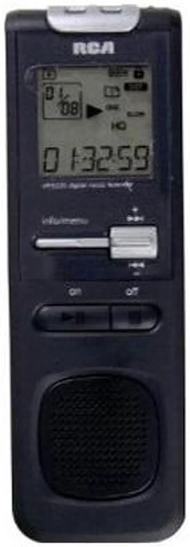 | Features | Voice-activated record allows recorder to sense the sound and start recording automatically RCA Digital Voice Manager (included) lets you organize and store your recordings on your PC Variable speed playback lets you slow down or speed up recordings Intro scan lets you preview message content to find messages quickly Play back audio files on PC and Mac Built-in editing functions, speaker, microphone, recording quality selector and headphone jack Date and time stamp automatically identify when recording was made Low battery indicator Adjustable mic sensitivity lets you customize for different sound settings Bookmark function lets you insert index marks to identify and retrieve important sound bites quickly |