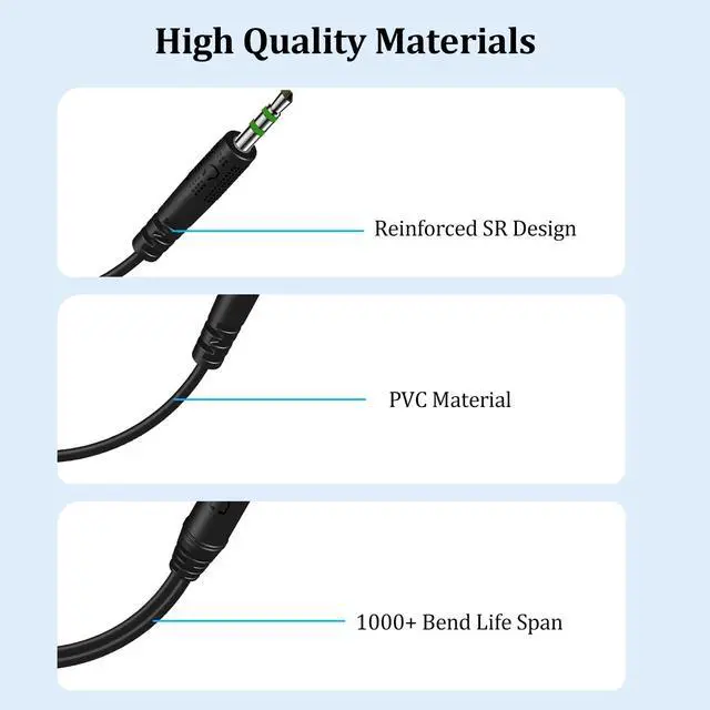 Tangle free design and premium TPE materials ensure durability for a longer lifespan. The strain relief construction prevents auxiliary cables from being damaged by excessive curvature.