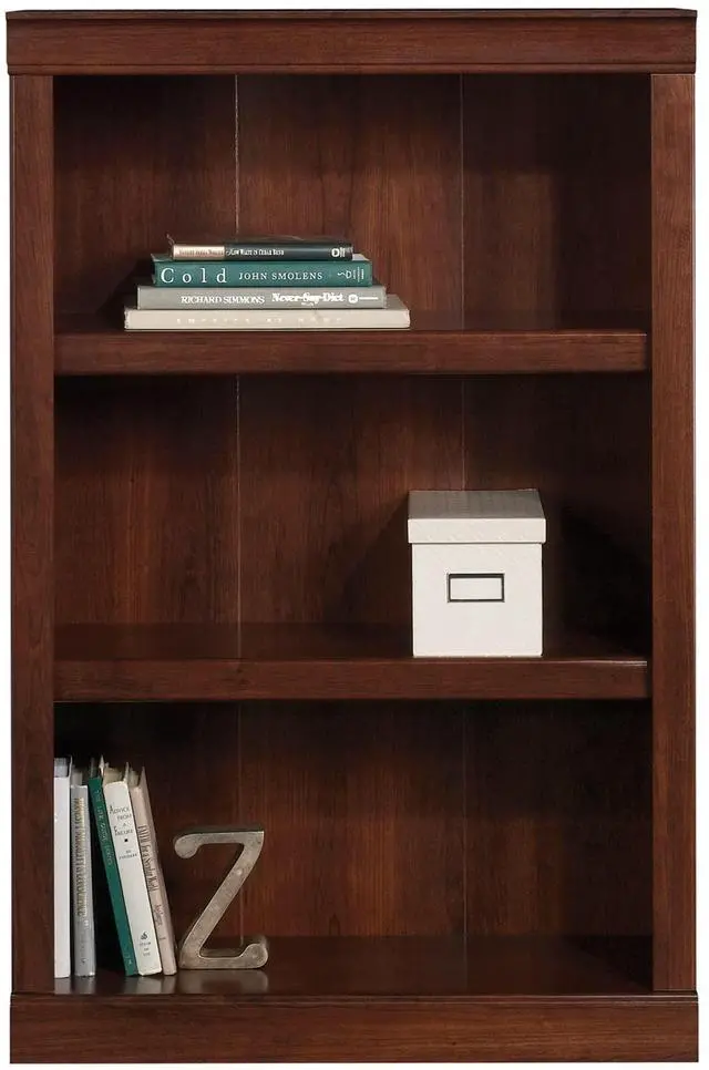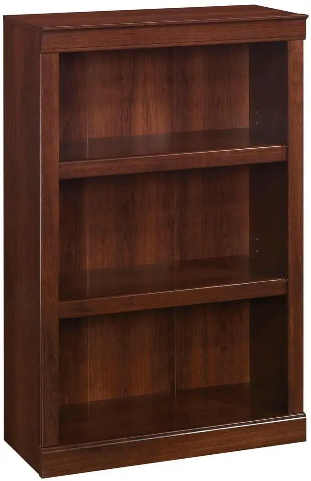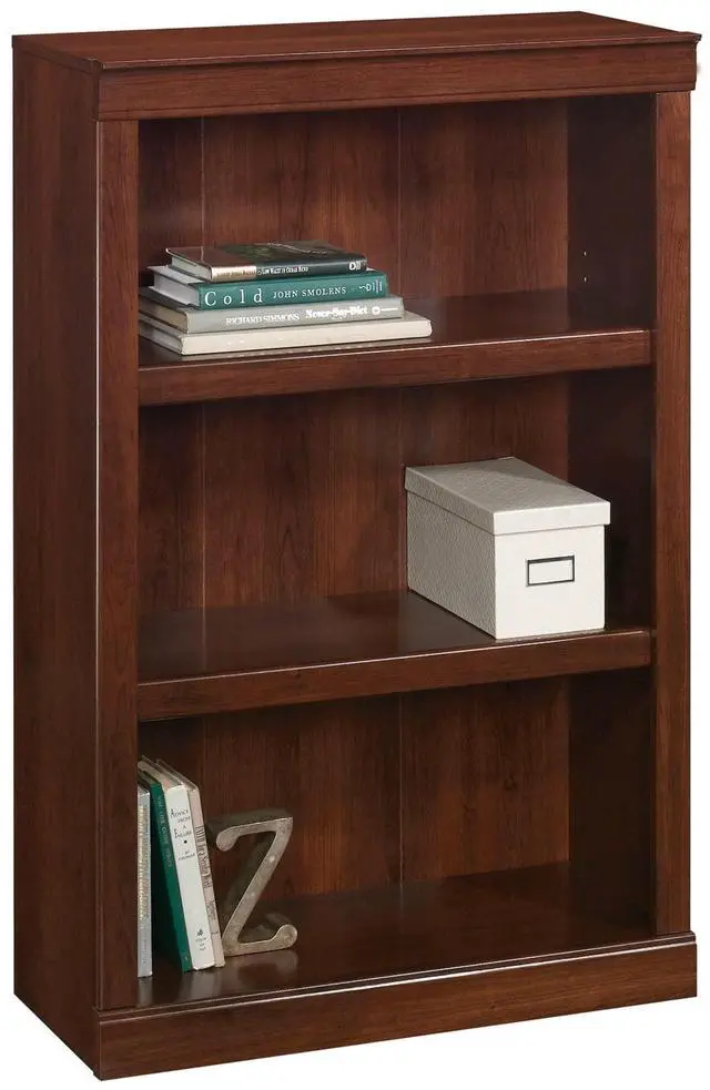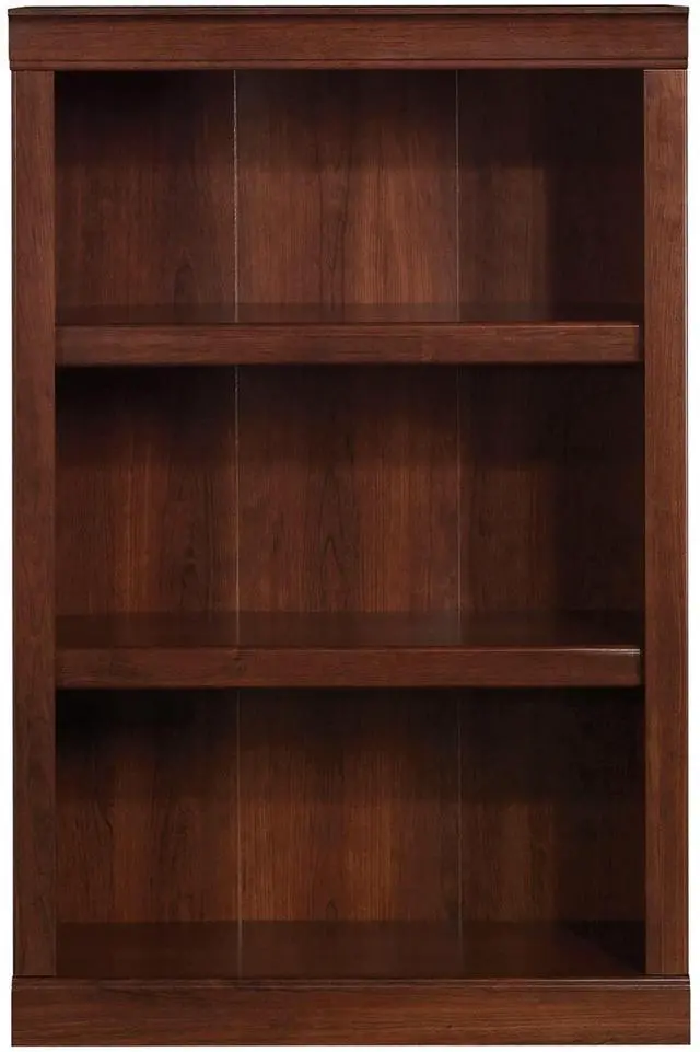 Crafted from engineered wood with a laminate finish. 3 shelves, including 2 adjustable. Accented with decorative molding. Weight capacity tested to support 25 lb (adjustable shelves) and 35 lb (bottom shelf). Assembly required. Finished in mulled cherry. Tested to meet ANSI/BIFMA Performance Standards - Manufacturer testing has been conducted on this product to meet specific performance requirements and safety standards set forth by the American National Standards Institute (ANSI) and the Business and Institutional Furniture Manufacturers. Interested in in-home assembly? Please call our certified and insured professional assemblers 866-388-4350 today!