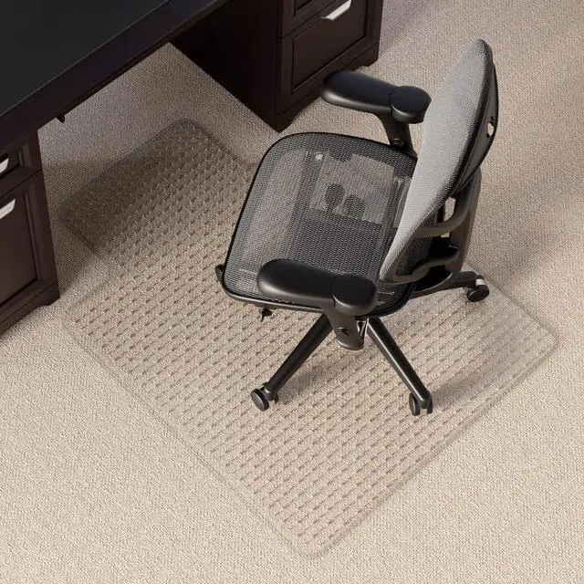 Extend the life of your carpet with a Realspace chair mat. Realspace chair mats provide a protective layer between chair wheels and carpet, helping to prevent wear in frequently used workstations. Designed with a smooth rolling surface, Realspace chair mats improve comfort by making it easier to move around your workspace. Realspace chair mats for carpet are made with clear vinyl and a studded backing to keep chair mat in place. Select a chair mat designed for your carpet thickness for optimum support and protection.
