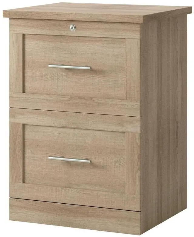 Keeping your important documents organized and secure is easy with the Realspace 2-Drawer Vertical File Cabinet. This file unit is made from strong and durable engineered wood and features a locking top drawer that is ideal for sensitive documents. The cabinet offers ball bearings to help the drawers glide smoothly, and the full-extension drawer design means you'll easily be able to reach files in the back. Engineered wood. 2 drawers with ball bearings and full-extension slides. Hang rails accommodate letter- and legal-size files. Top drawer features a key lock. Weight capacity per drawer tested to support 20 lb.