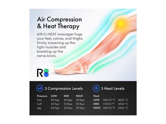 - 3 levels of air compression intensities allow you to adjust your massager to your comfort and needs
