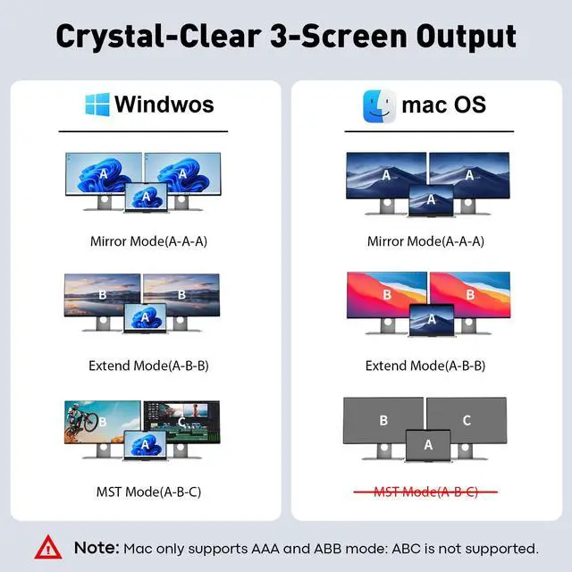 TRUE DUAL 4K MONITOR SUPPORT FOR WINDOWS: Maximize your productivity with dual monitor docking station capability. On Windows systems, our USB C to dual HDMI dock uses MST technology to extend your screen across two independent 4K @30Hz displays from a single USB-C portperfect for multitasking, trading, and professional workflows. (Please Note: Mac OS ONLY support mirror mode.