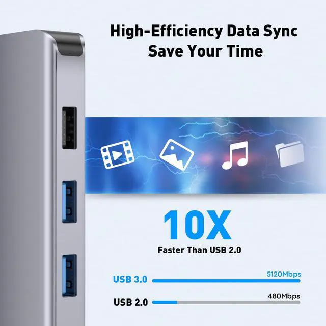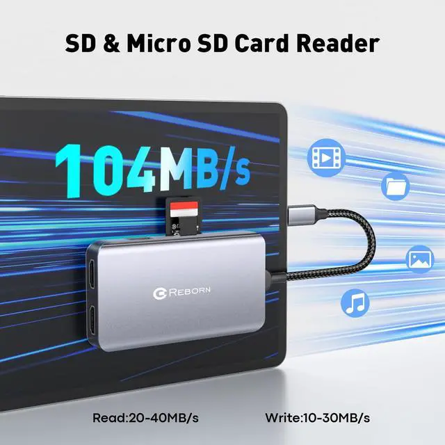 ULTRA-FAST DATA TRANSFER HUBS & CARD READER: Transfer files in seconds. The high-speed USB 3.0 ports and dedicated USB C 5Gbps data port offer super-speed connectivity for external drives. The built-in SD card reader and Micro SD (TF) card slot provide direct access for photographers and creators, making this a versatile USB C adapter for laptop.