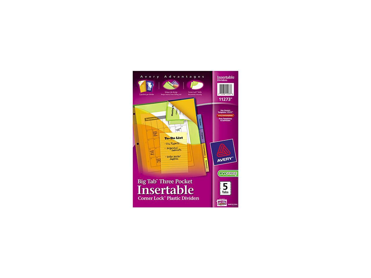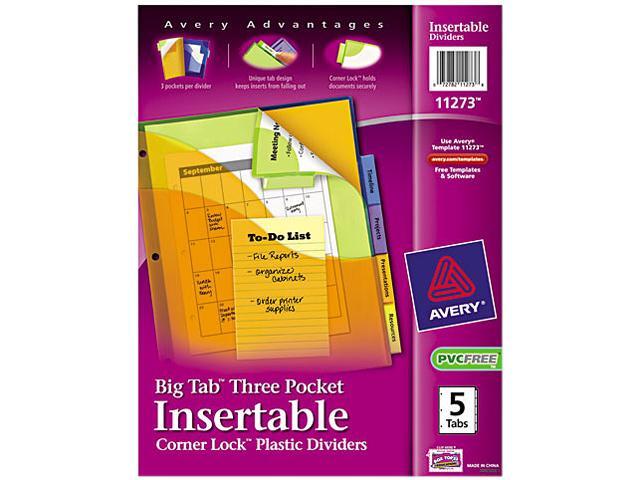 Avery Big Tab Plastic Dividers w/Three Pockets & Corner Lock 5-Tab 11 1/8 x 9 1/4 11273