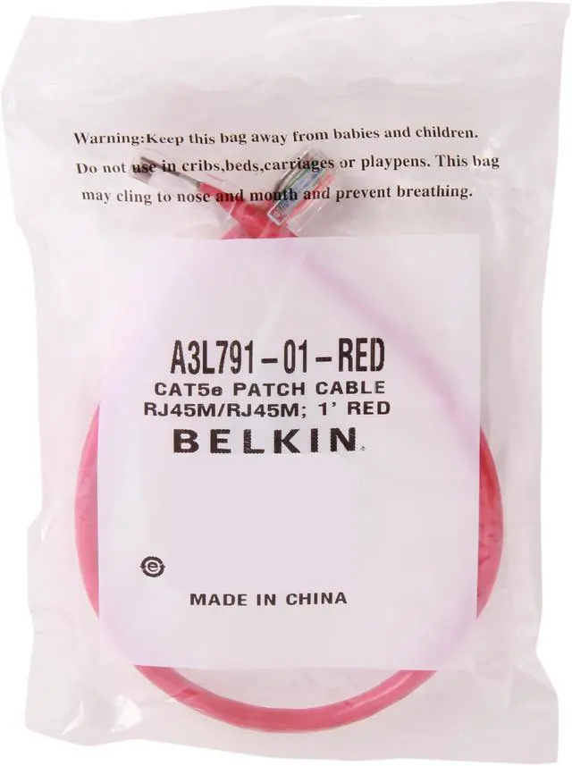 Belkin A3L791-01-RED 1 ft. Cat 5E Red Network Cable