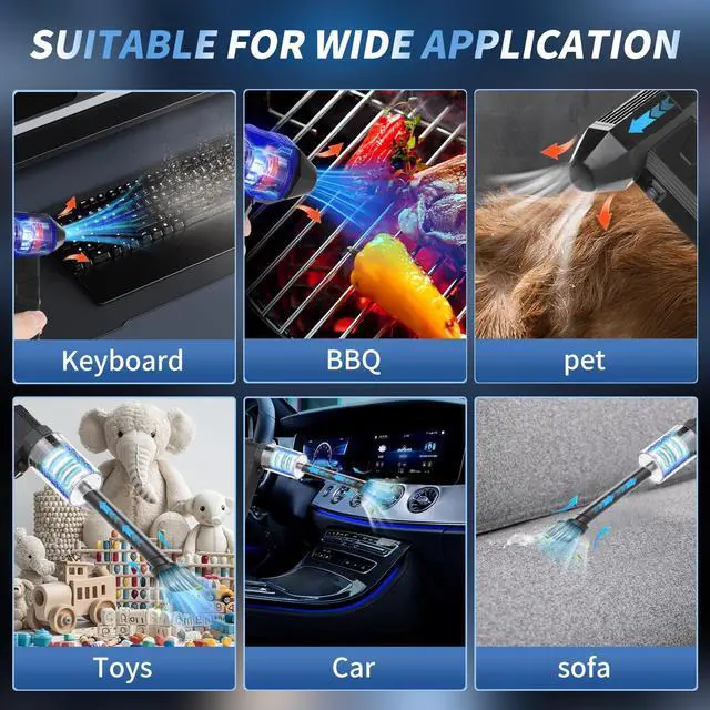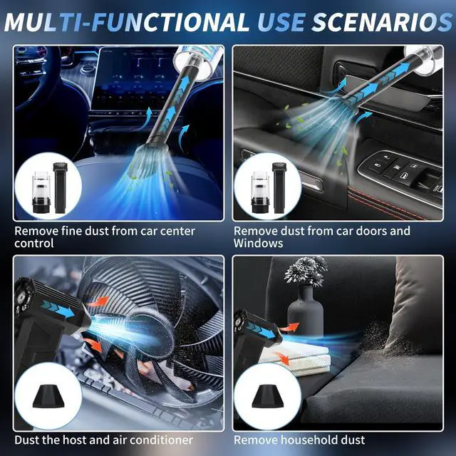 Multi-Function Design Combines vacuuming, blowing, drying in one compact device. Use the interchangeable nozzles for precise dust removal, drying damp surfaces, or cleaning delicate electronicsideal for home, car, and travel use.