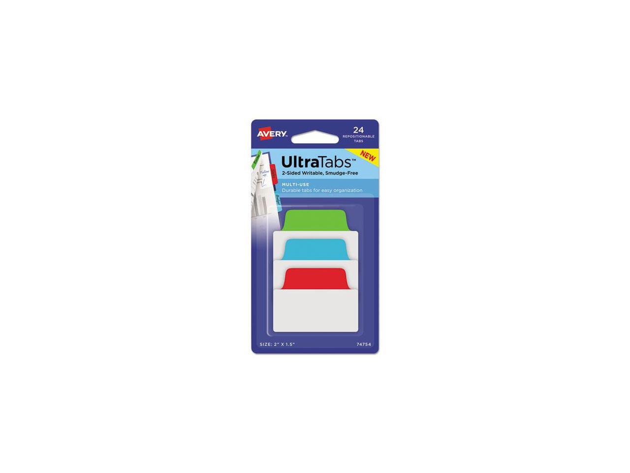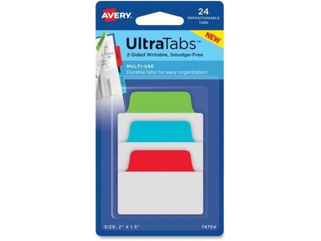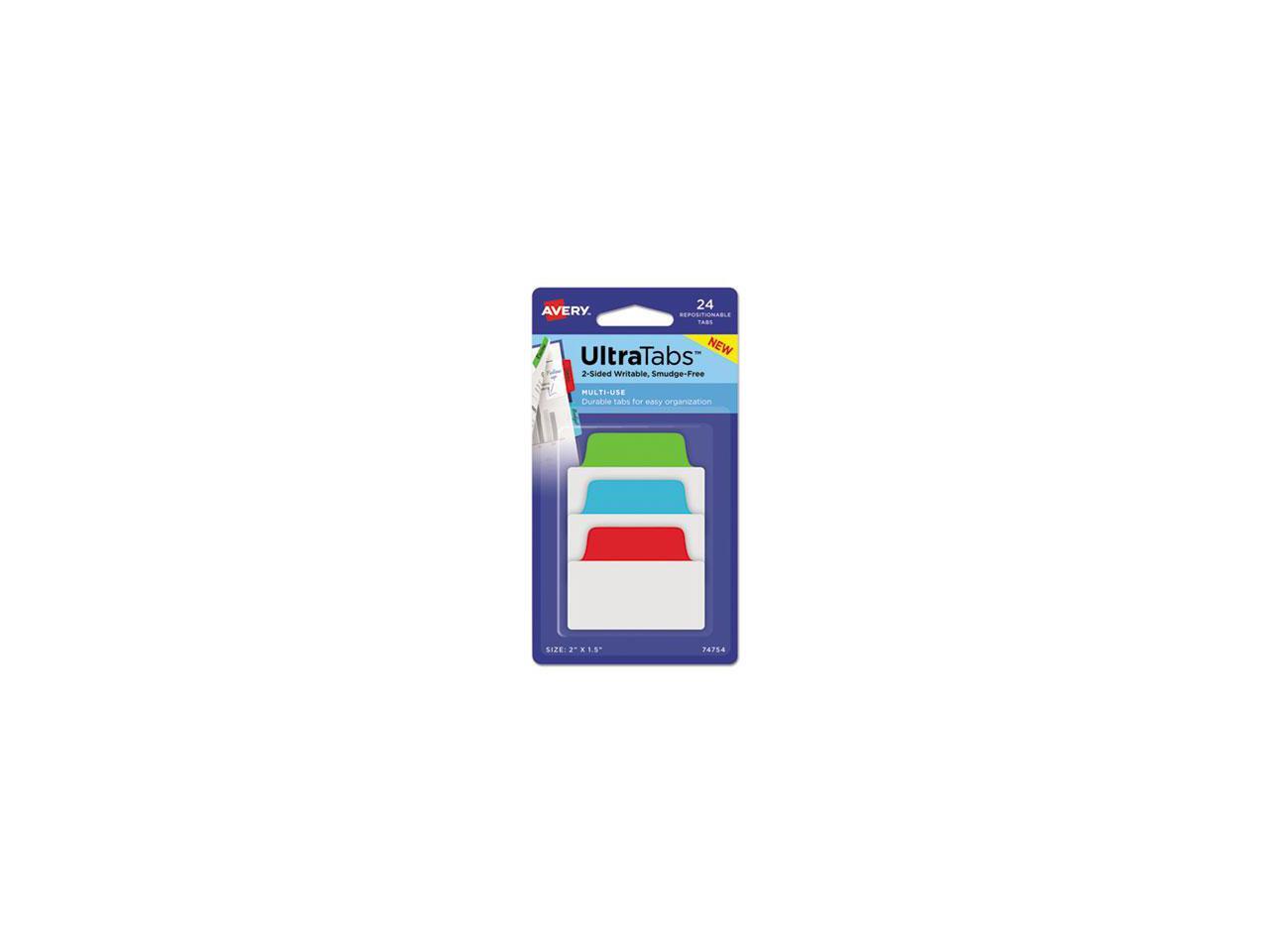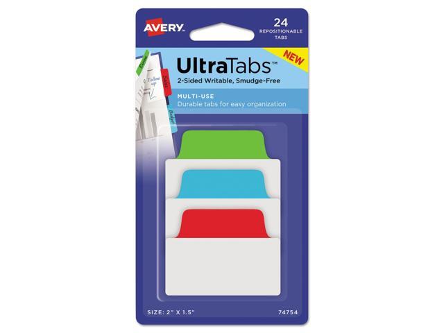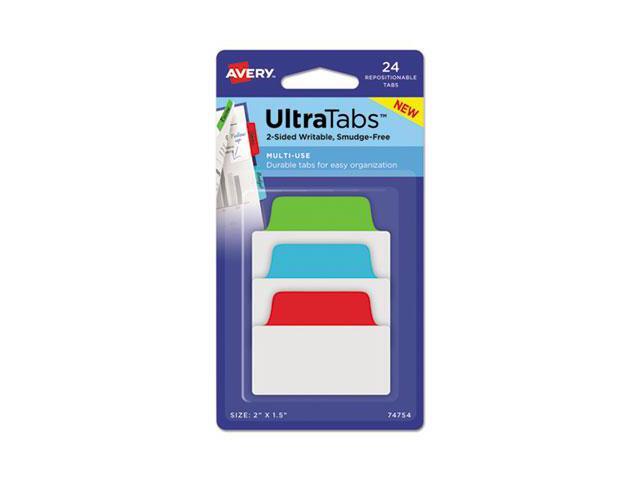 Avery Ultra Tabs Repositionable Tabs 2 x 1 1/2 Primary: Blue Green Red 24/Pack