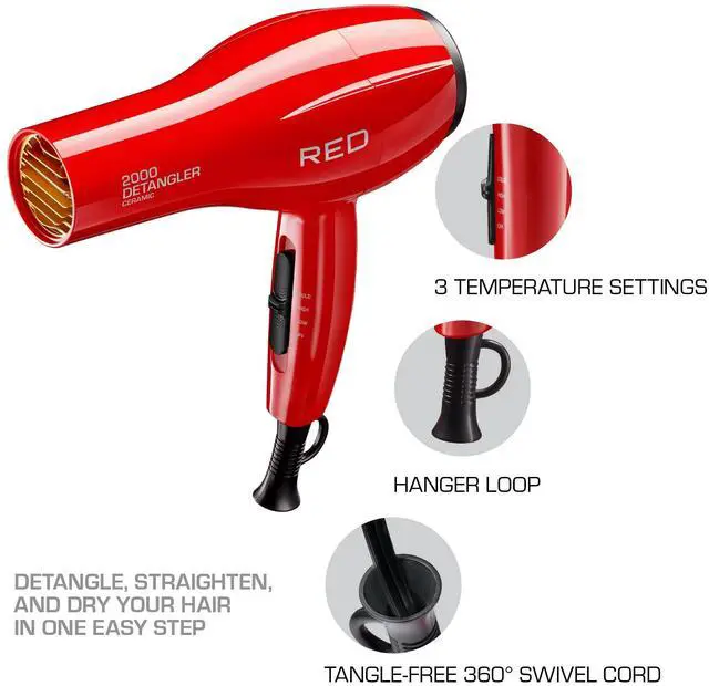 Red by Kiss 2000 Ceramic Hair Dryer ensures smooth and frizz-free results by reducing static and enhancing your hair's natural shine. The gentle yet efficient airflow dries your hair quickly while maintaining its moisture balance, preventing over-drying and damage.
