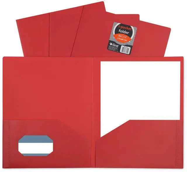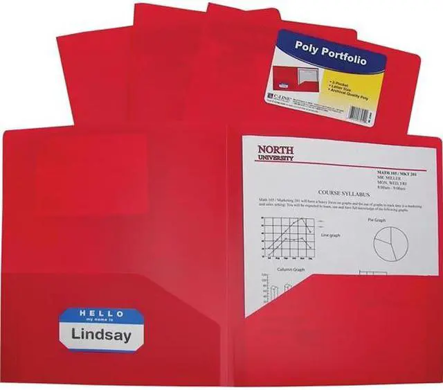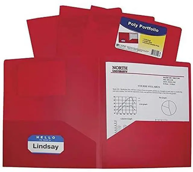 Two-pocket heavyweight polypropylene portfolios / folders hold papers and resist tearing. Features business card slot. Without prongs. For 11 x 8 1/2 document storage. Red.