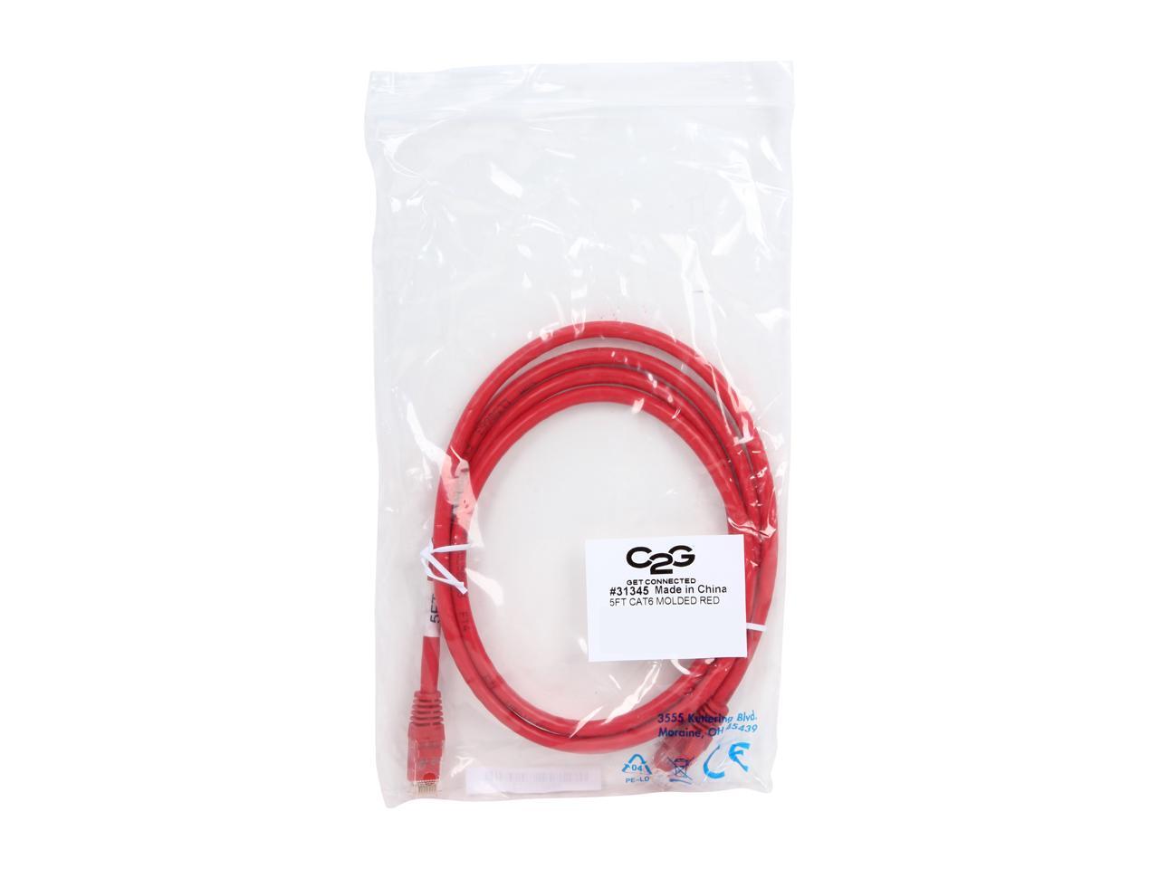 C2G 31345 Cat6 Cable - Snagless Unshielded Ethernet Network Patch Cable, Red (5 Feet, 1.52 Meters)