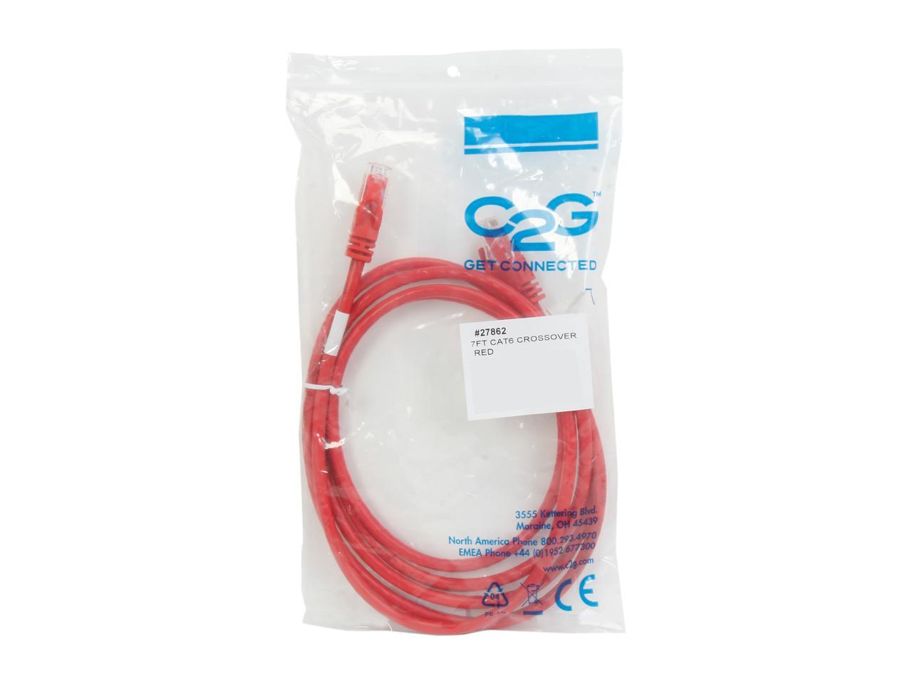 C2G 27862 Cat6 Crossover Cable - Snagless Unshielded Network Crossover Patch Cable, Red (7 Feet, 2.13 Meters)