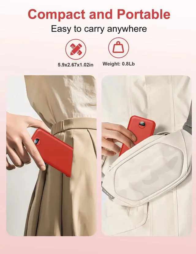 • Recharge the portable charger in two ways: via the built-in AC wall plug (100-240V) for a full charge in 5 hours, or use the USB-C (PD18W) port for a faster 4-hour charge. The power bank can simultaneously charge your phone while recharging the battery pack itself, offering maximum convenience