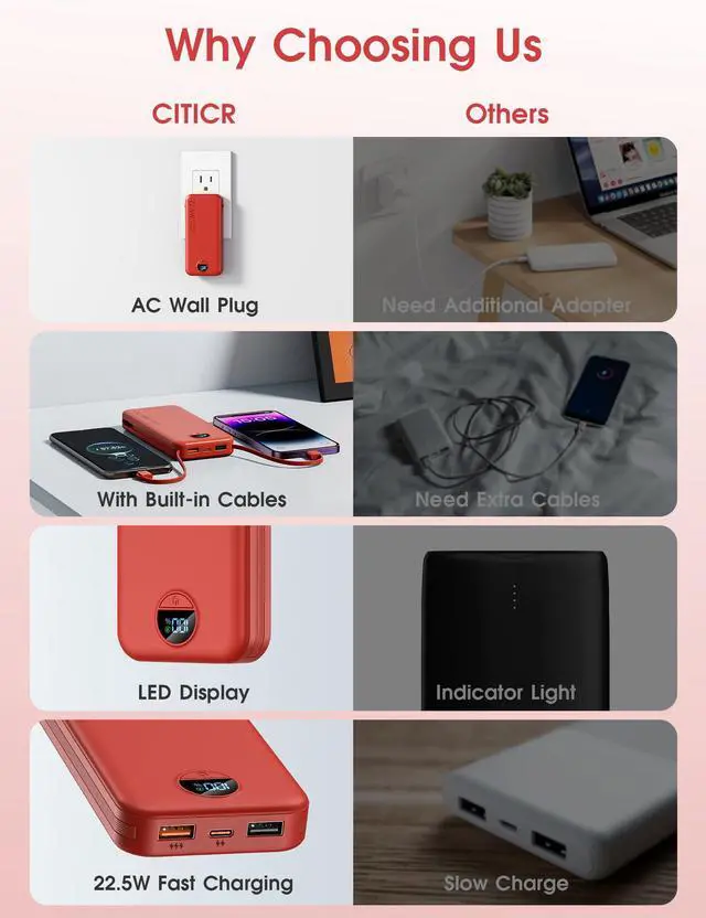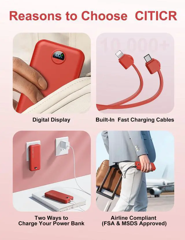 CITICR is a company focussed on the research of portable chargerwith built-in cables and wall plug. We have been selling power banks for more than ten years. Gathered a group of senior developers and mature production lines.