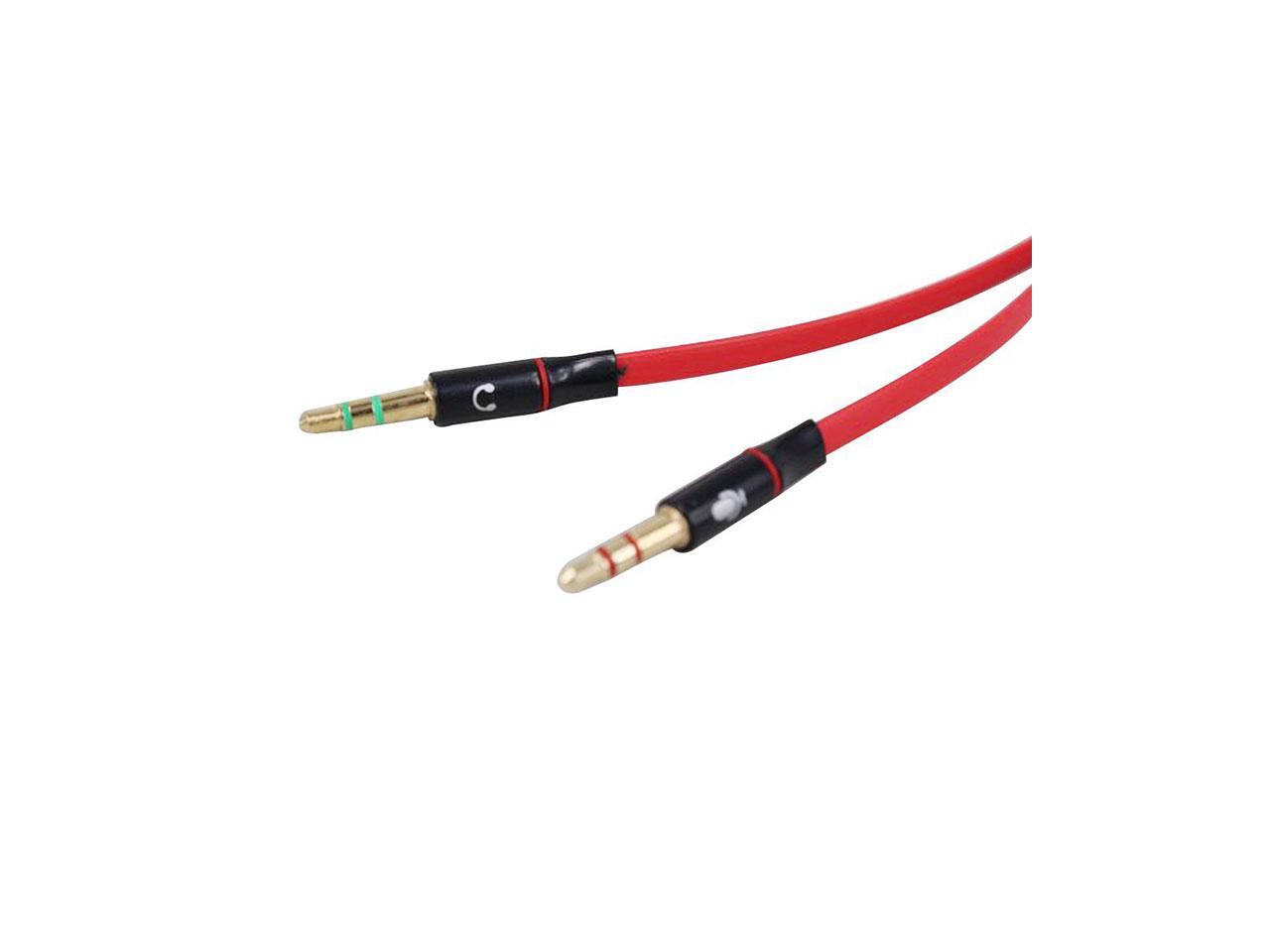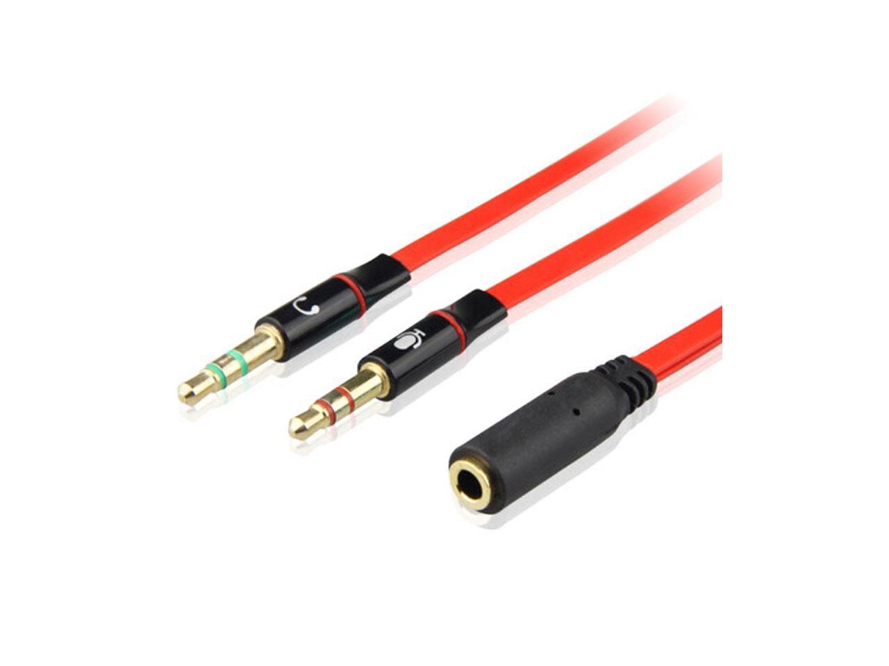3.5mm 4 Position TRRS Female to 2 3-Pole Male Gold Plated Headphone Mic Audio Y Splitter Flat Cable - 8 inch,Red