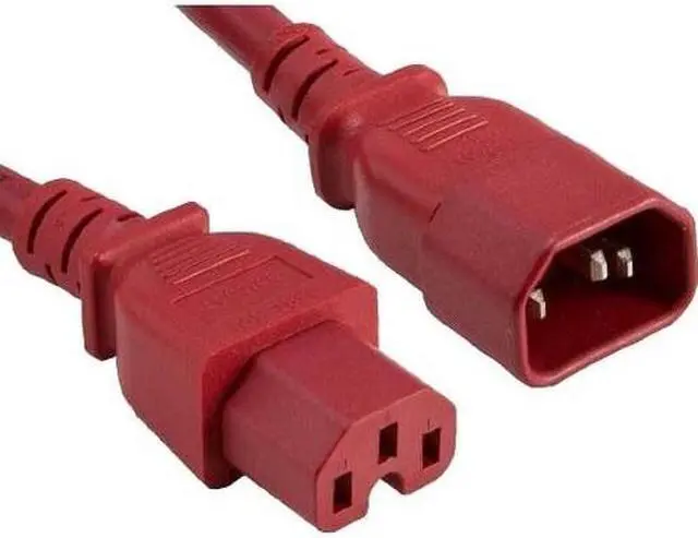 ENET C14 to C15 3ft Red Power Extension Cord 14 AWG 15A NEMA IEC-320 C14 to NEMA IEC-320 C15 Red 3' - Lifetime Warranty
