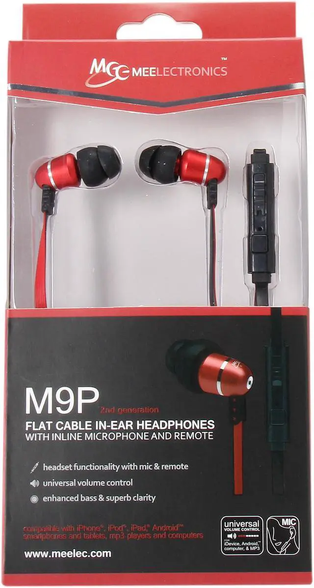 MEElectronics M9P Flat Cable In-Ear Headphone with Inline Microphone, Remote, and Universal Volume Control