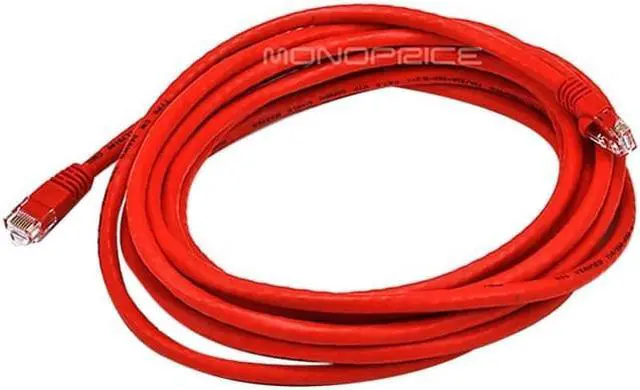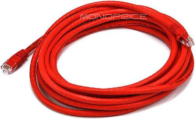 Monoprice Cat6 Ethernet Patch Cable - Network Internet Cord - RJ45, Stranded, 550Mhz, UTP, Pure Bare Copper Wire, 24AWG, 14ft, Red