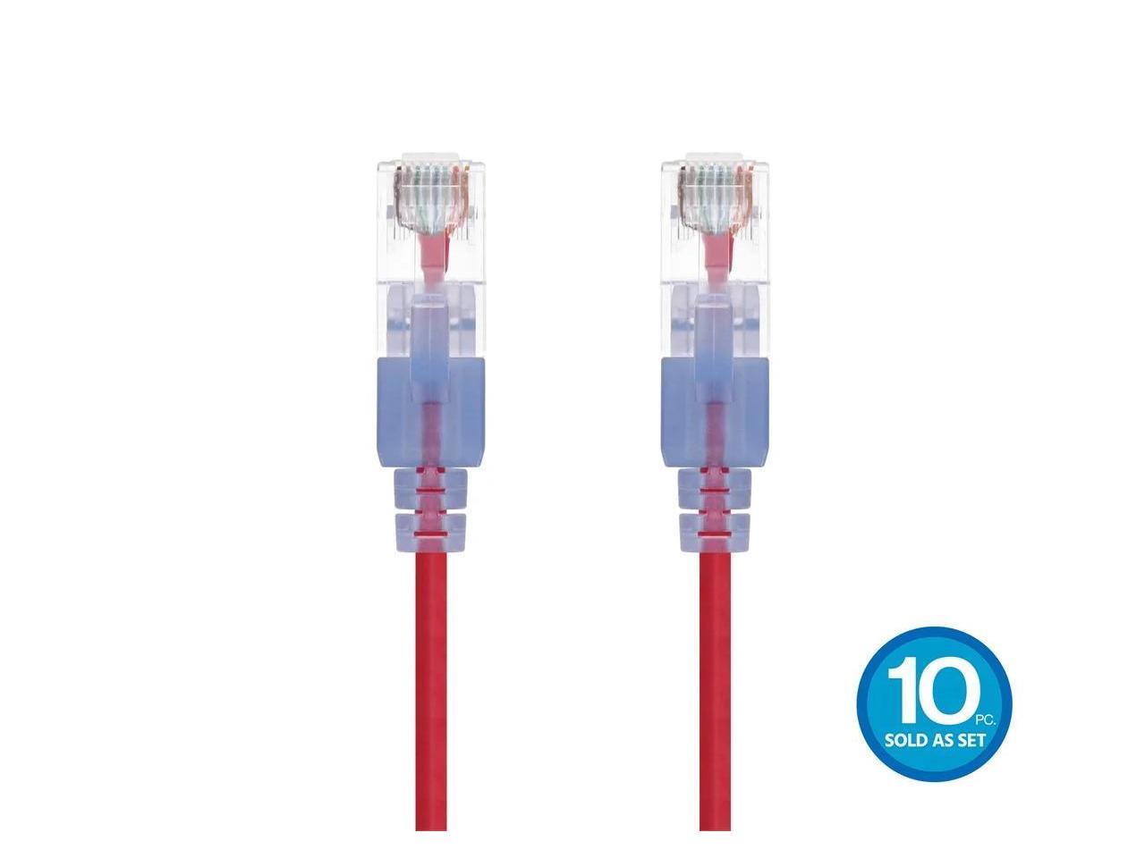 Monoprice Cat6A Ethernet Patch Cable - 3 Feet - Red (10 Pack) Snagless RJ45 550Mhz UTP Pure Bare Copper Wire 10G 30AWG - SlimRun Series