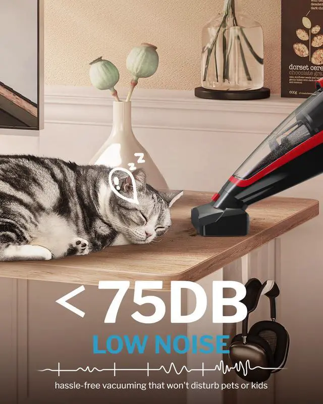 Multi-Functional Accessories: Besides the electric brush designed for pet hair, the hand vacuum comes with a crevice tool perfect for narrow corners and gaps, along with a dusting brush suitable for upholstery and carpets. These attachments expand its versatility for various cleaning needs.