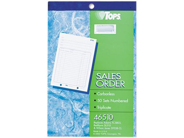 Tops 46510 Sales Order Book, 5-1/2 x 7-7/8, Three-Part Carbonless, 50 Sets/Book