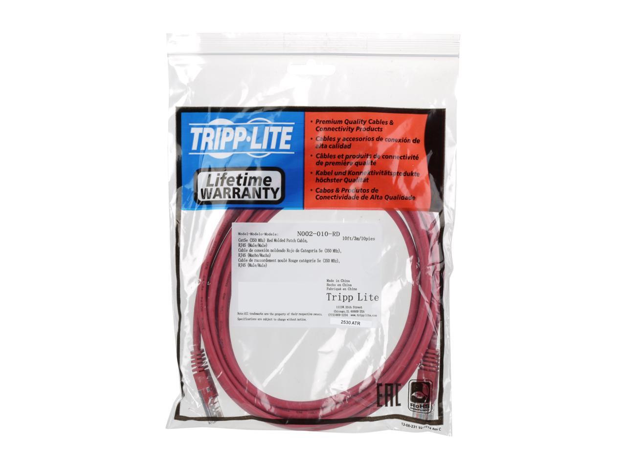 TRIPP LITE N002-010-RD 10 ft. Cat 5E Red 350MHz Molded Cable