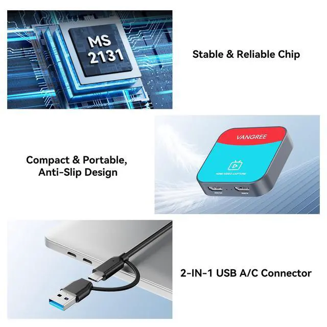 The MS2131 chipset ensures video stability and near-zero latency during capture, eliminating disruptive delays in gameplay or streams. Combined with the CS4344 audio decoder, it produces vivid, layered stereo sound with precise instrument separation.