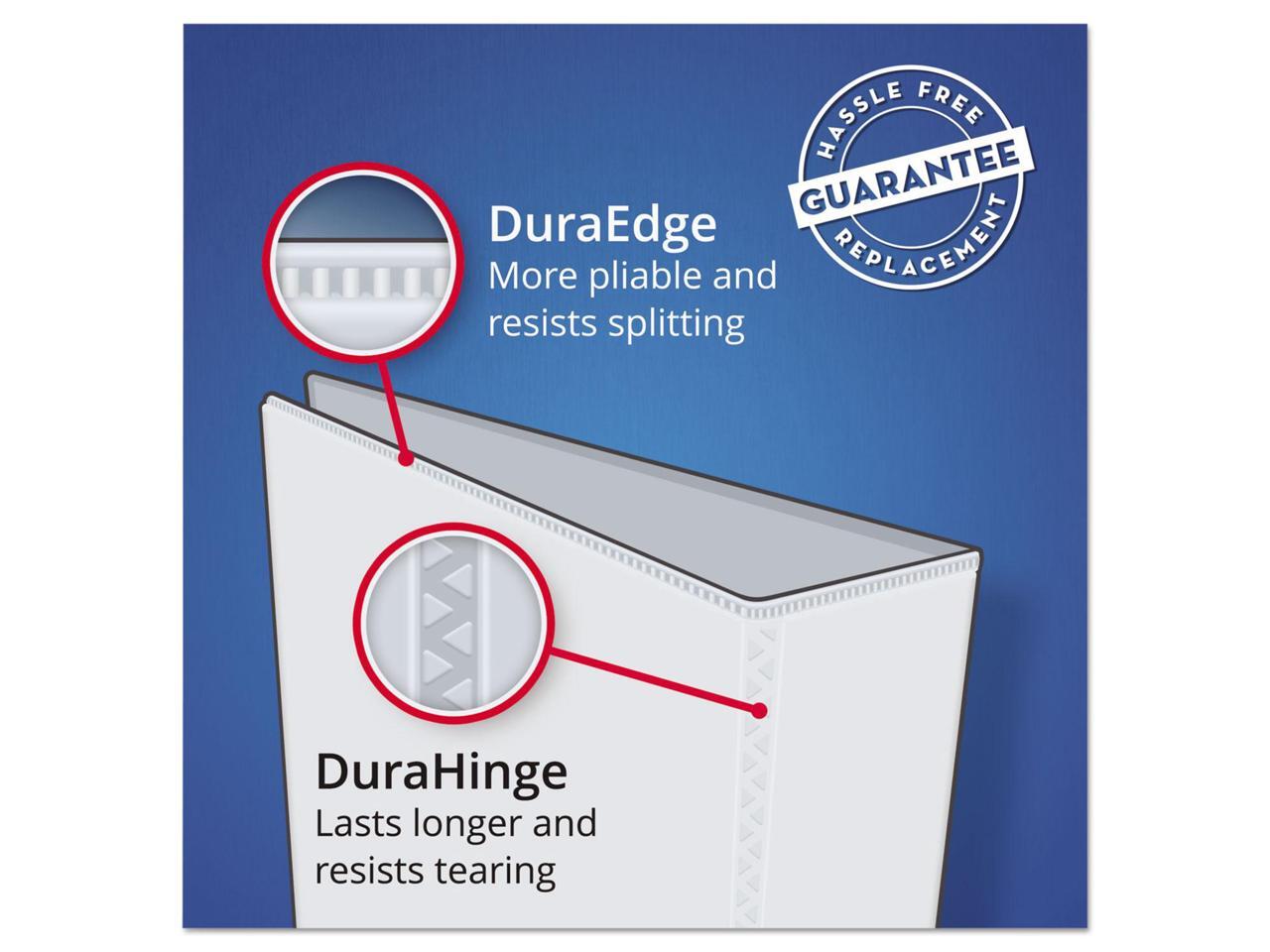 - Built tough and designed to resist tearing using patented DuraHinge(R) and DuraEdge(R) technology. Keep divider tabs and sheet protectors safe with the wide front and back covers.