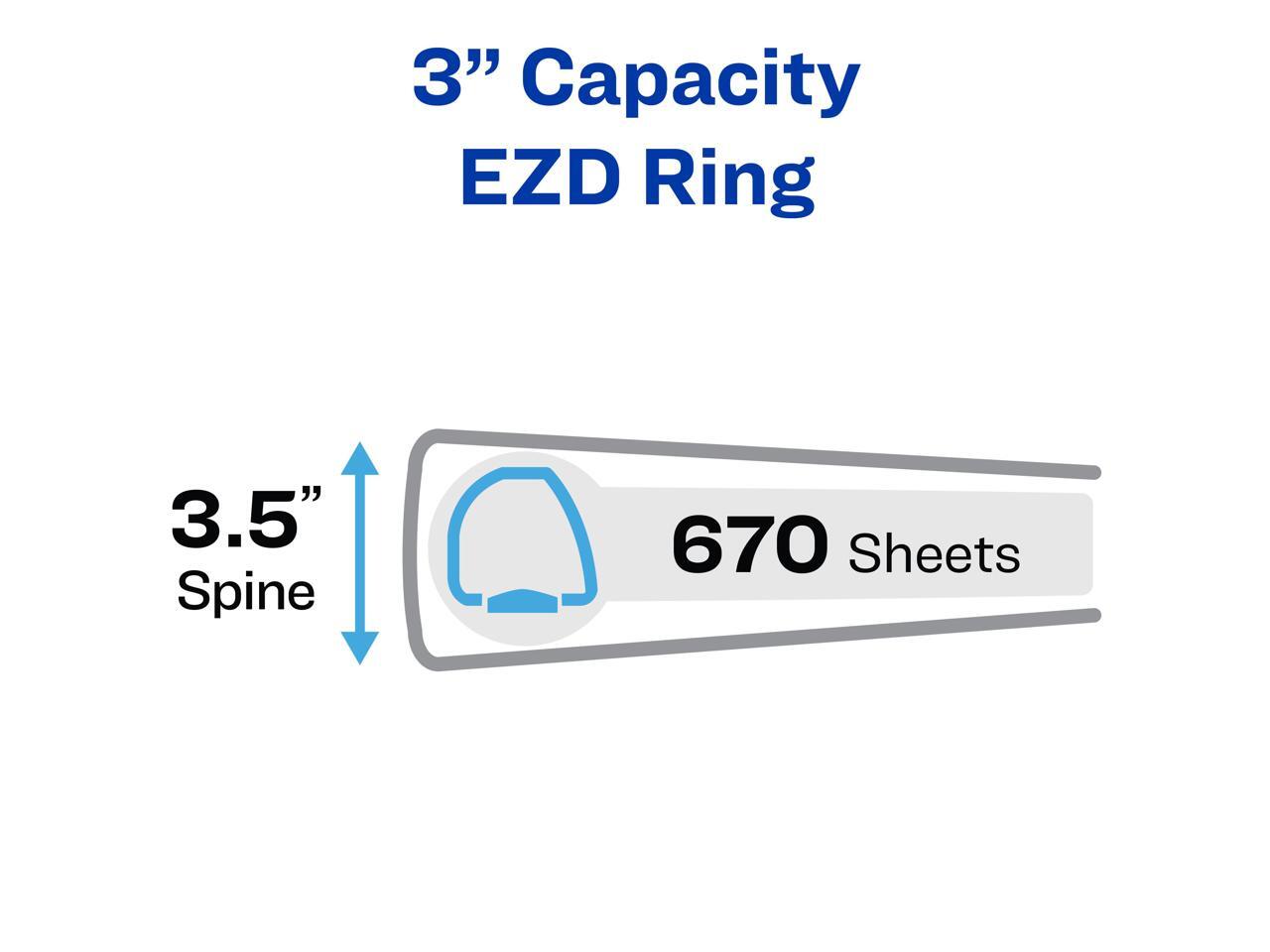 - Back-mounted 3 inch EZD rings open with ease, hold up to 50% more sheets than round rings and can keep up to 670 sheets flat and secure.