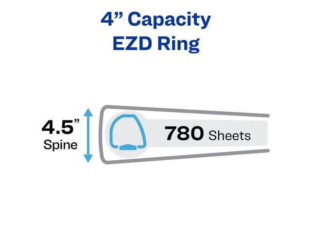 - Back-mounted 4 inch EZD rings open with ease, hold up to 50% more sheets than round rings and can keep up to 780 sheets flat and secure.
