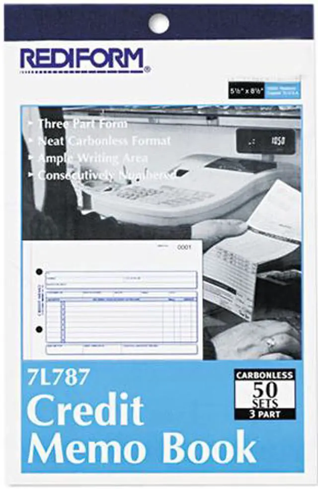 Rediform 7L787 Credit Memo Book, 5-1/2 x 7-7/8, Carbonless Triplicate, 50 Sets/Book