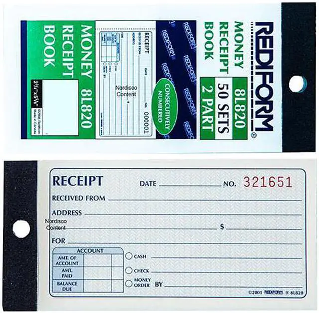 Rediform 8L820 Small Money Receipt Book, 5 x 2 3/4, Carbonless Duplicate, 50 Sets/Book