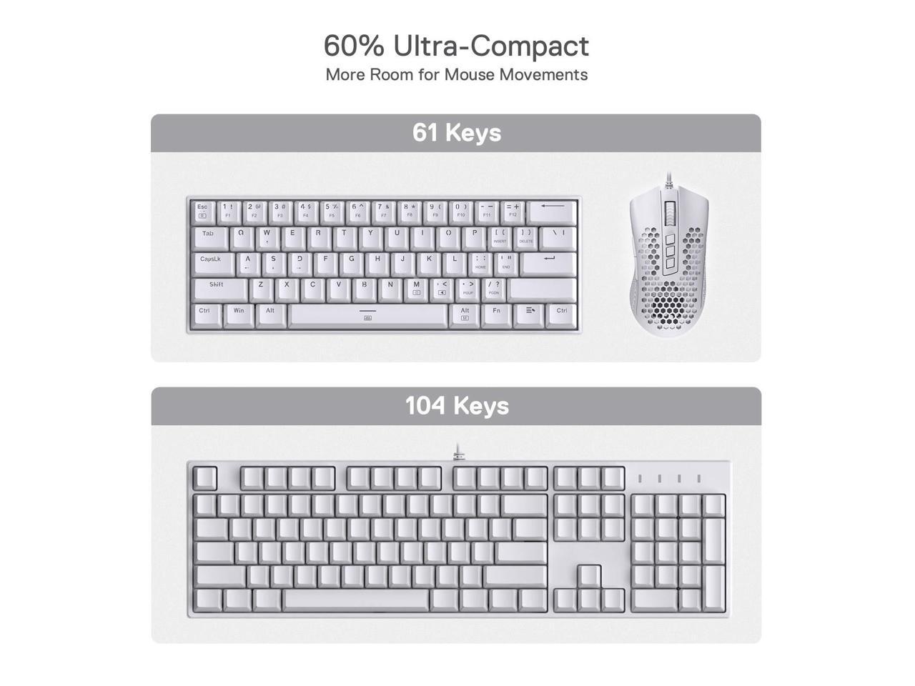 Wired 60% Layout: Brand New Redragon 60% NKRO 61 keys for ultra-compact and minimalistic design, frees up precious desk space for less clutter.