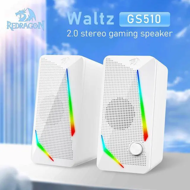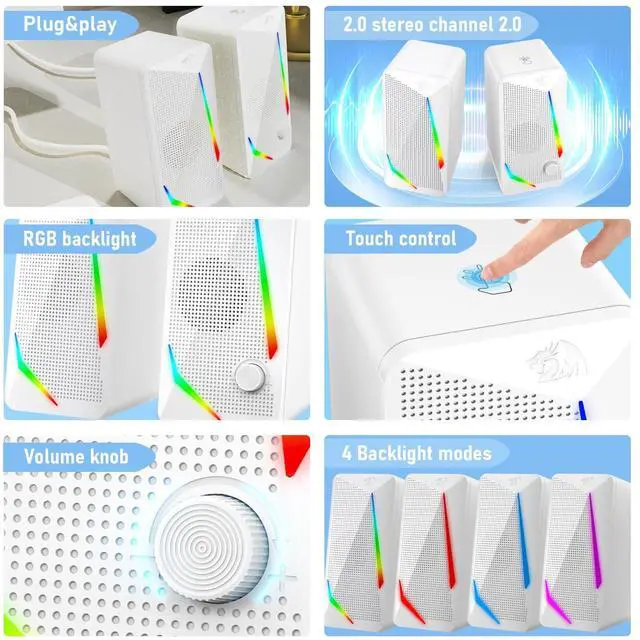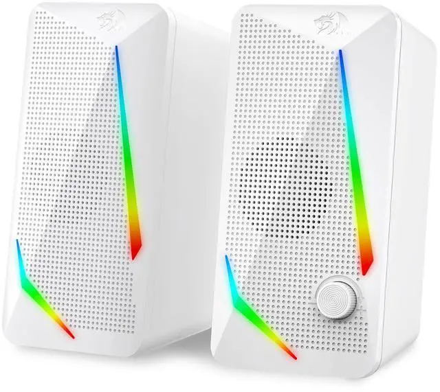 Redragon GS510 RGB Desktop Speakers, 2.0 Channel PC Computer Speaker with 4 Colorful LED Backlight Modes, Enhanced Bass and Easy-Access Volume Control, USB Powered w/ 3.5mm Cable, White