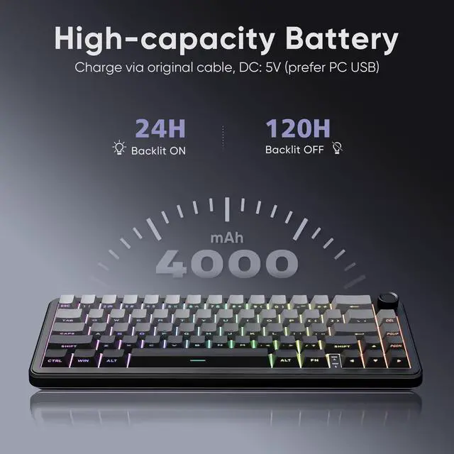 - Tri-mode: stable wired, cable-free 2.4G, mobile-friendly Bluetooth, catering to diverse scenarios.