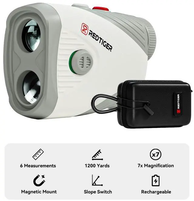 REDTIGER Golf Rangefinder with Slope, 1200 Yards Laser Range Finder Golfing, 7X Magnification, Flag Pole Locking Vibration, Rechargeable Range Finders with Magnet Stripe
