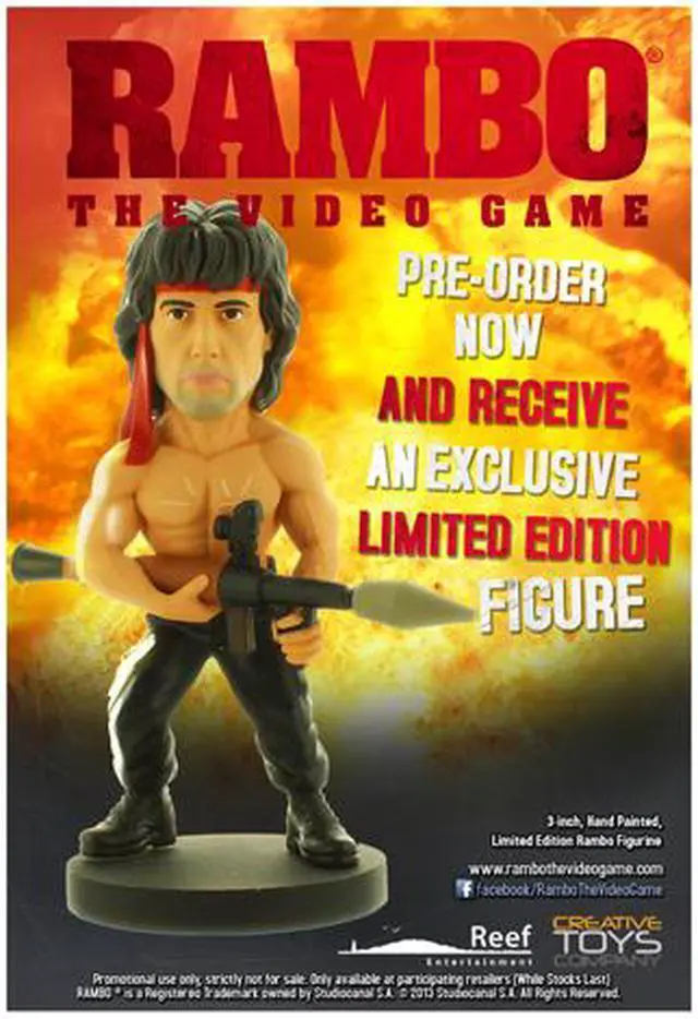 | Features | RAMBO THE VIDEO GAME puts the player in John Rambo's combat boots, and takes them on an action packed journey through the iconic combat sequences and story-arcs of FIRST BLOOD , RAMBO: FIRST BLOOD PART II & RAMBO III . Locked and loaded with the trademark Rambo arsenal of weapons, you battle through the boss showdowns and take-downs from the films. 1 and 2 player game modes. 15 levels of action based on the movie series. Features voices of Rambo & Col. Trautman taken from original on-set recordings from Studio Canal's archives. Story scenes were created using motion capture by renowned studio, Alvernia, who were responsible for MoCap in games such as 'The Witcher 2'. |