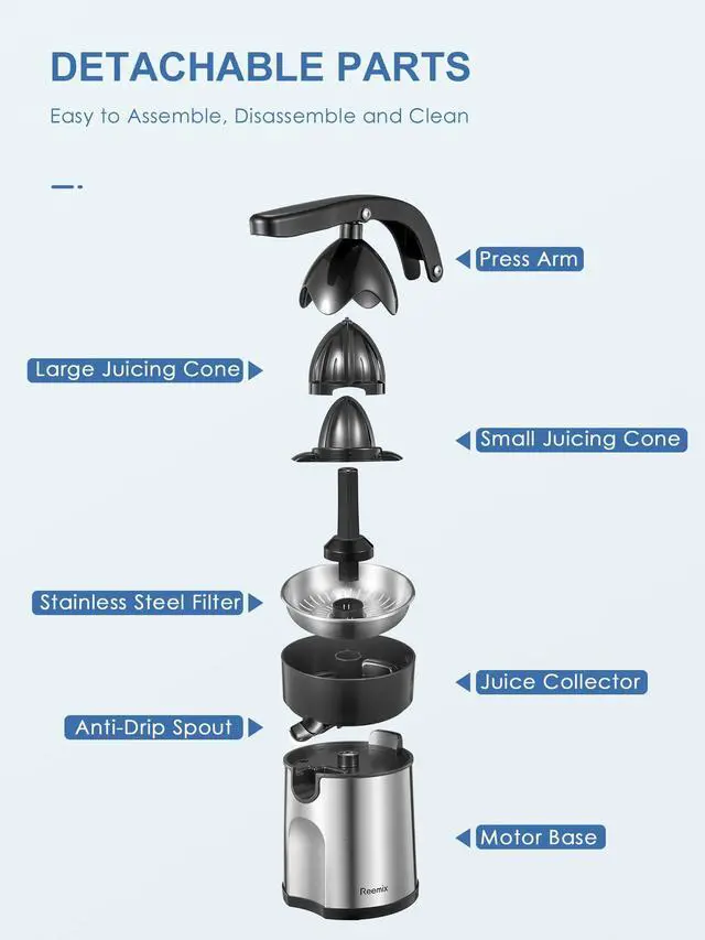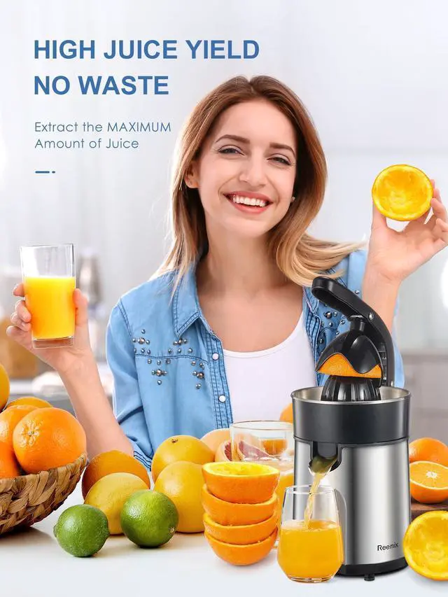 The Reemix orange juice machine is made of stainless steel, and the appearance of latte adds a highlight to your kitchen.