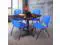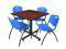 The elegant Kobe collection puts the class in classroom. These versatile tables are at home in stylish restaurant settings as well as classrooms, breakrooms and more. This set includes one 42-inch square Kobe table and four Blue "M" Stack Chairs. The table is constructed of a thermal fused melamine laminate tabletop that is 1-inch thick and finished with a black Bumper Edge edge band. This Cherry tabletop is double-sided and finished in Maple on the other side. Rounded corners make the table safer for everyone. Simply pick the side you like and install the base on the other.